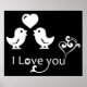 "JE T'AIME" AIMEURS OISEAUX ET COEURS EN NOIR ET BLANC