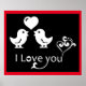 "JE T'AIME" AIMEURS OISEAUX ET COEURS EN NOIR ET BLANC