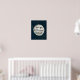 L'art d'impression de typographie sur le thème du ciel nocturne présente la citation "je t'aime jusqu'à la lune et retour" en lettrage manuscrit au pinceau inscrit sur une lune lumineuse sur un fond bleu nuit foncé parsemé d'étoiles. Un ajout unique à vos murs ou à la nurserie d'un bébé garçon ou fille.
