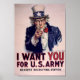Une affiche de la Première Guerre mondiale montrant l'oncle Sam pointant du doigt le spectateur pour recruter des soldats pour l'armée pendant la Première Guerre mondiale. L'expression imprimée "poste de recrutement le plus proche" contient un espace vide ci-dessous pour ajouter l'adresse pour s'enrôler. Créé par James Montgomery Flagg.