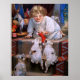 Décorez votre mur d'une affiche vintage de Noël charmante avec une petite fille partageant son bas avec trois mignons chiots. com.