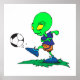 Affiches joueur de football alien amusant botter le ballon