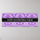 Banderole personnalisable nom et âge heureux d'anniversaire affiche dans amusant et audacieux violet clair, noir et blanc classique motif floral damask.