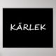 Kärlek est le mot suédois pour l'amour. Blanc sur noir.