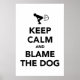 Keep Calm and Blame the Dog. Man's best friend, especially when you've just farted - it's always a great excuse to blame the dog! In the style of the famous Keep Calm and Carry On poster. Retro charm with a wicked twist!