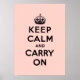 Pink and black keep calm and carry on. To change size has your taste. This design makes reference to the famous poster appeared during the Second World War.