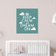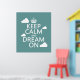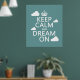 This reads Keep Calm and Dream On, in the style of the classic keep calm poster. There are clouds floating by the words. It's a beautiful calm design, which is popular in bedrooms and nurseries.
