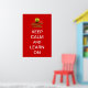 This poster features a red background, with an image of a green apple on three red books, and white text that reads, "Keep Calm and Learn On".