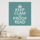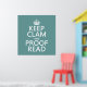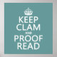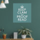 C'est l'affiche traditionnelle 'Keep Calm and Carry On' reformulée en 'Keep CLAM and Proof Read'. C'est mon meilleur design de vente, populaire auprès des enseignants, des étudiants, des écrivains, et de tous ceux qui travaillent avec des mots. En vente aussi aux amateurs de palourdes ! Si vous voulez changer la couleur de l'arrière - plan, appuyez simplement sur "personnaliser". Si vous voulez d'autres changements ou un nouveau design, contactez-moi par mon magasin et je ferai ce que je peux. Merci d'avoir cherché. :)