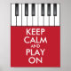 KEEP CALM personnalisé et PLAY ON - mots blancs et (changer) couleur arrière - plan rouge, clavier d'un piano