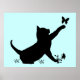 Affiches Kitties Jouer avec des papillons en silhouettes