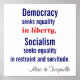 "La démocratie étend la sphère de la liberté individuelle, le socialisme la restreint. La démocratie attache toute la valeur possible à chaque homme ; le socialisme fait de chaque homme un simple agent, un simple nombre. La démocratie et le socialisme n'ont rien en commun, mais un seul mot : égalité. Mais remarquez la différence : alors que la démocratie recherche l'égalité dans la liberté, le socialisme recherche l'égalité dans la retenue et la servitude".