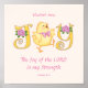 Cette affiche personnalisée pour votre chambre d'enfants a une mignonne poussette jaune formant le mot "JOY", décorée de roses roses. L'écriture que nous avons choisie dit "La Joie de l'Eternel est ma Force" de Néhémie 8:10 et est personnalisable.