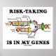 Es-tu preneur de risques ? Les gens aventureux apprécieront cette affiche d'attitude sur la biologie qui présente la réplication de l'ADN, ainsi que le dicton "La prise de risque est dans mes gènes". Faites faire aux autres une double prise sur où vous obtenez votre côté audacieux avec une dose d'humour geek aujourd'hui!