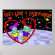 Nous savons que Dieu est partout et nous savons que Dieu est amour, qu'Il nous aime tous. Cette affiche porte ce fait à la limite. Pas de science-fiction, mais de pure vérité biblique.