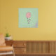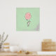 Une affiche avec un lapin fantaisiste tenant un gros ballon rose flottant dans les airs. Sur un fond vert clair.