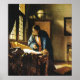 Peinture baroque classique d'un homme dans son étude, oeuvre d'art qui est passée dans le domaine public et fait de merveilleux cadeaux et autres produits. Un des rares tableaux de Vermeer ne montrant qu'une figure masculine, c'est le même modèle et le même décor que son Astronome. Johannes (ou Jan, ou Johan) Vermeer était un peintre baroque hollandais connu pour sa palette distinctive de bleu et de jaune. Van Gogh a été influencé et assez intrigué par Vermeer, l'appelant un "étrange peintre" dont la palette "est constituée de bleu, de jaune de cornflower, de gris perle, de noir et blanc." L'oeuvre de Vermeer montre généralement des portraits et des scènes de la vie domestique, et il est passé de l'obscurité à devenir l'un des peintres les plus admirés de son époque. Tous nos produits sont fabriqués avec des images à grande échelle qui ont été soigneusement modifiées pour fournir la meilleure résolution, couleur et détail possible.