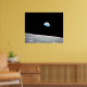 Apollo 8. Cette vision de la Terre montante a accueilli les astronautes Apollo 8 alors qu'ils venaient de derrière la Lune après la brûlure d'insertion de l'orbite lunaire. La Terre est à environ cinq degrés au-dessus de l'horizon sur la photo. Les caractéristiques de surface non nommées au premier plan se trouvent près du membre oriental de la Lune tel qu'on le voit de la Terre. L'horizon lunaire est à environ 780 kilomètres de l'engin spatial. La largeur de la zone photographiée à l'horizon est d'environ 175 kilomètres. Sur la Terre à 40 000 km de là, le terminateur du coucher de soleil divise l'Afrique.