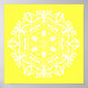 Ce mandala blanc est assis sur un arrière - plan jaune citron. Les couleurs sont joyeuses et paisibles. Une partie de la collection Erghenn Mandala.