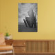 Une image très émouvante du mémorial des débarquements du Jour J en juin 1944 - Les Braves. Cette magnifique sculpture est représentée ici en noir & blanc classique avec les Braves situés légèrement à droite de l'image orientée portrait avec le sable, l'océan et le ciel orageux remplissant le cadre autour d'eux