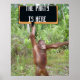 Cette affiche aide vos invités à savoir qu'ils ont trouvé la bonne porte de maison, de suite ou d'appartement. Peu importe l'endroit, ce petit orang-outan donne l'ambiance de fête tout de suite. Il y a des invitations assorties pour les enfants et les adultes. L'artiste est impliquée dans la secourt et la réhabilitation d'orphelins d'orangs-outans et utilise ses bénéfices pour aider les 350 orphelins du centre de soins.