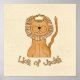 Un mignon lion caricaturé couronné avec le texte 'Lion de Juda'.