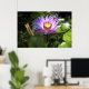 Une belle image d'un lis pourpre et jaune dans un étang.