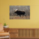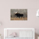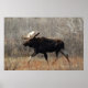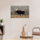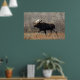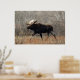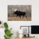 Affiche d'orignal. Un grand orignal mâle traverse péniblement les broussailles dans une région de collines de sable dans le sud-est de l'Alberta, au Canada. Les orignaux semblent déplacés dans ce terrain sec et sablonneux, qui contient très peu d'eau pour soutenir la végétation aquatique dont les orignaux se nourrissent habituellement.