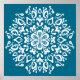 Ce mandala blanc est assis sur un arrière - plan turquoise. Les couleurs sont très calmes et paisibles. Partie de la collection Pras Mandala.