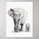 Un dessin au crayon d'une mère éléphante et de son bébé marchant vers vous.