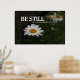 Poster avec le verset du Psaume 46 qui dit "Soyez calme et sachez que je suis Dieu" contre l'arrière - plan d'une photo de marguerites blanches aux centres jaunes dorés encourage les téléspectateurs à ralentir et à considérer le côté spirituel de leur vie.