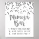 Affiche de bar Mimosa pour mariage en blanc et argent confetti motif avec lettrage de style manuscrit. Parfait pour les douches mariages ou nuptiales.