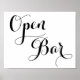 Panneau de réception Open Bar noir et blanc (affiche). Les dimensions de l'affiche sont de 14 pouces sur 11 pouces.