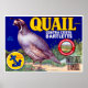 étiquette de caisse vintage pour poires de marque Quail Contra Costa Bartlet de Californie.