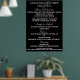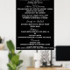 Un menu à poster élégant, élégant et élégant avec des polices fluides et droites qui peuvent être customisées pour convenir à votre événement spécial. On y trouve des entrées, un toast à la mariée, des soupes, des salades, des entrées, des desserts et des boissons.