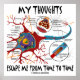 Vos pensées vous évitent de temps en temps ? Montrez votre sens de l'humour du neurone/synapse ciré avec cette affiche qui présente toutes les parties clés d'un neurone/synapse, ainsi que le dicton "Mes pensées m'évitent de temps en temps". Pas besoin d'être absent pour en profiter !