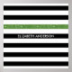 Personnalisez ce poster motif moderne large horizontal noir et blanc rayures avec une bande verte comme une parties scintillant en ajoutant le nom de toute petite fille. Ce motif à rayures graphiques tendance est parfait pour le fashionista chic. Image imprimée plate, PAS de parties scintillant réelle.