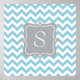 Un motif zig zag en chevron bleu et blanc a un cadre monogramme gris clair avec une initiale personnalisable.