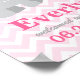 Une affiche élégante et sucrée "bienvenue avec amour" en pépinière d'art présente un adorable petit veau d'éléphant nouveau-né gris avec des éclaboussures en forme de coeur rose vif, un motif arrière - plan moderne de rayures de chevrons rose clair et blanc, texte personnalisé pour le prénom du bébé et la date de naissance.