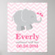 Affiches Monogramme personnalisé d'éléphant rose et gris mo