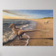 Utahraptor se dresse dans les profondeurs de la grande mer intérieure crétacée du début, et regarde vers l'horizon au lever du soleil. Utahraptor, bien que l'un des plus grands dromaeosaures, n'a certainement pas toujours abattu de grandes proies de manière dramatique et sanglante. Ce matin, ces dromaeosaures n'avaient pas assez faim pour chasser, ils ont donc peigné la plage pour trouver des coquillages et des minuties protéiques échoués par la marée. Un petit troupeau de ptérosaures ornithocheiroïdes passe par-dessus.