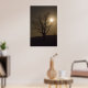 Pleine lune nichée dans des branches d'arbres nues, lors d'une froide soirée de novembre ;