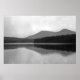 Un cadre calme et serein...l'image miroir de montagnes et d'arbres réfléchie dans un étang dans les Montagnes Blanches du New Hampshire forme un motif abstrait de noir, blanc et gris. C'est une affiche de voyage simple et élégante de photographie d'art.