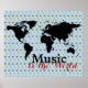 Musique au monde. Une carte du monde noir avec de nombreuses notes musicales dans la mer arrière - plan
