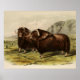 Illustration vintage de deux Muskox debout dans les prairies du désert américain. Le boeuf musqué est un mammifère arctique qui tire son nom de l'odeur émise par le mâle pour attirer les femelles pendant la saison de reproduction. L'illustration, de John James Audubon, a été publiée en 1851.