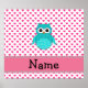 Chouette Turquoise/turquoise/aqua aux coeurs roses motif et diamants roses rayés (pas de vrais diamants) personnalisées avec vos cadeaux de nom ou de monogramme ou vos initiales