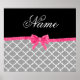 Personnalisé nom personnalisé quatrefoil gris treillis marocain motif avec un arc de parties scintillant rose (pas de vraie parties scintillant) ruban personnalisé avec juste ajouter vos cadeaux de nom ou de monogramme ou vos initiales. avec un élégant et traditionnel lettrage fantaisie