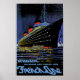 Affiche de voyage vintage pour les paquebots Normandie, qualifiée de "navire le plus parfait du monde".
