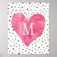 Impression d'aquarelle moderne coeur pépinière avec monogramme personnalisé en rose fuchsia avec motif pois amusant aquarelle.