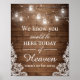 Nous Savons Que Vous Seriez Ici Mariage Rustique Poster. (1) La taille par défaut est de 8 x 10 pouces, vous pouvez la changer à n'importe quelle taille. (2) Pour plus de personnalisation, cliquez sur le lien "customiser plus loin" et utilisez notre outil de conception pour modifier ce modèle. (3) Si vous avez besoin d'aide ou d'articles correspondants, veuillez me contacter.